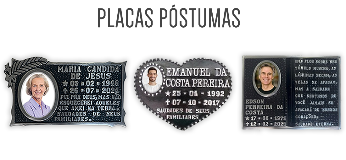 molduras, crucifixos, placas fundidas e gravadas, letras, vasos e imagens religiosas em alumínio e bronze.